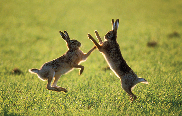 As a result of their secretive nature and their speed, they are usually difficult to see close to. Sometimes in the early Spring they can be seen 'boxing', giving them the reputation of 'Mad March hares'. The fighters are actually the females, spurning the advances of males by boxing away prospective partners.